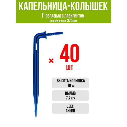 Капельница Г-образная 10см 7,7л/ч синяя (подключается к трубке 3/5мм) (40шт)