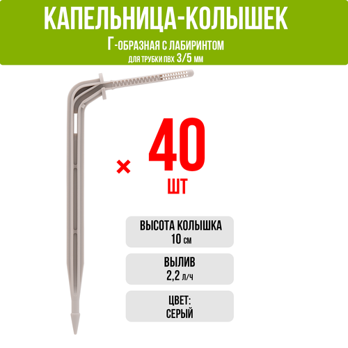 Капельница Г-образная с лабиринтом, 10см, 2л/ч, серая (подключается к трубке ПВХ 3/5мм). Упаковка 40шт.