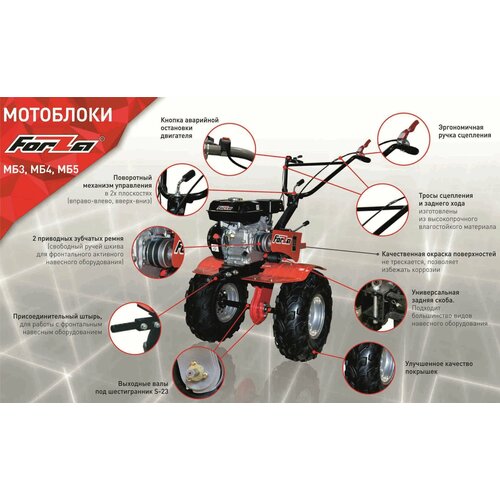 Мотоблок Forza МБ5-701 с пониженной, 3впер+1наз (7 л. с.)(колеса 4x10+фрезы)/собран в России