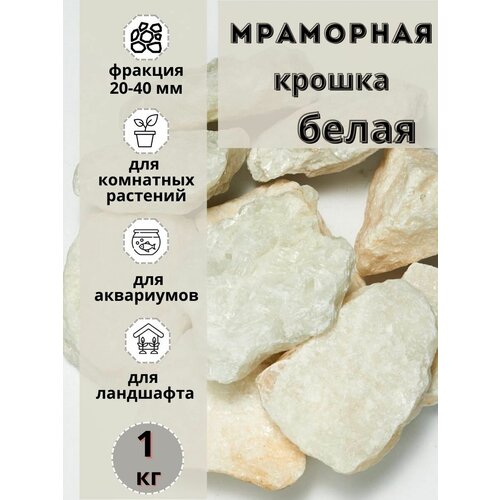 Мраморная крошка белая 20-40мм фракция (1 кг) для комнатных и садовых растений