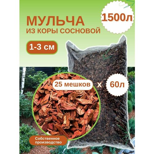 Мульча из коры сосновой мелкая (1-3 см) ЭкоТорг, 60 л. Комплект 25шт