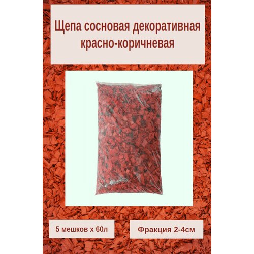 Щепа сосны красно-коричневая для декора сада и мульчирования. 2-4см Комплект 5 мешков х 60л.