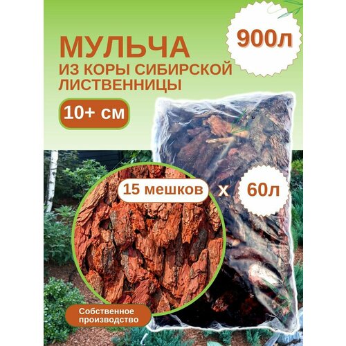 Мульча из коры лиственницы сибирской большая (более 10 см) ЭкоТорг, 60 л. Комплект 15шт