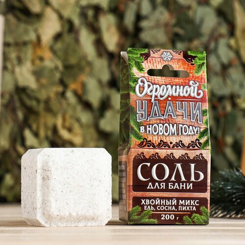 Соляной брикет-куб "Удачи в Новом году" хвойный микc, 200 гр