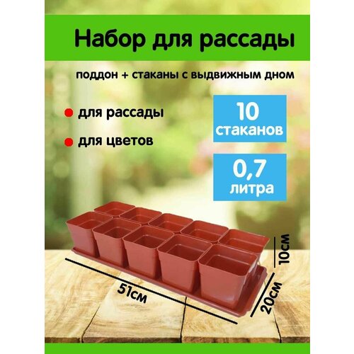 Набор для рассады "Дачник-1" 10 стаканов 0,7л + поддон, терракотовый, Сузун
