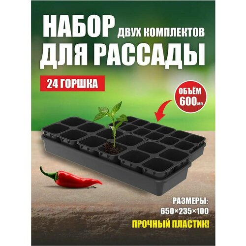 Набор для рассады 0,6л*24 стаканчика с вкладышем (6 кассет по 4 стаканчика) + 2 ящика) АП 117/2