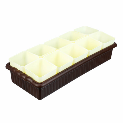 бежевыйНабор для рассады Palisad 643452 состоит из 14 горшочков объемом 460 мл, с выдвижным дном, и поддона размером 600 х 185 х 45 мм. Размер каждого горшочка составляет 80 х 80 х 100 мм. Набор предназначен для выращивания молодых растений и транспортировки их к месту пересадки в открытый грунт.