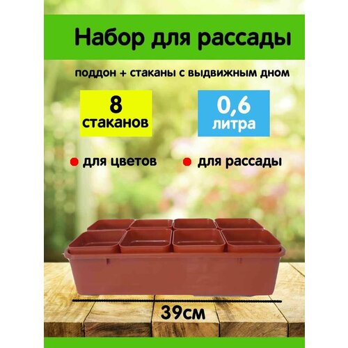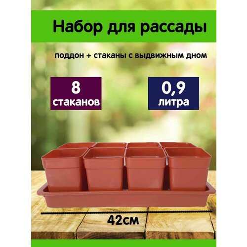 Набор для рассады "Дачник-2" 8 стаканов 0,9л + поддон, терракотовый, Сузун