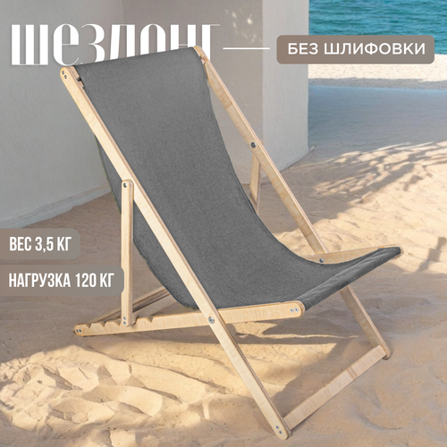 Кресло-шезлонг "Берёзка" без шлифовки с серой тканью складной для дома и дачи
