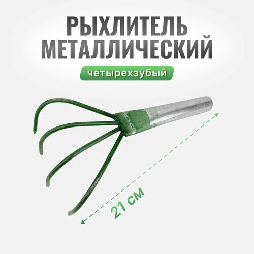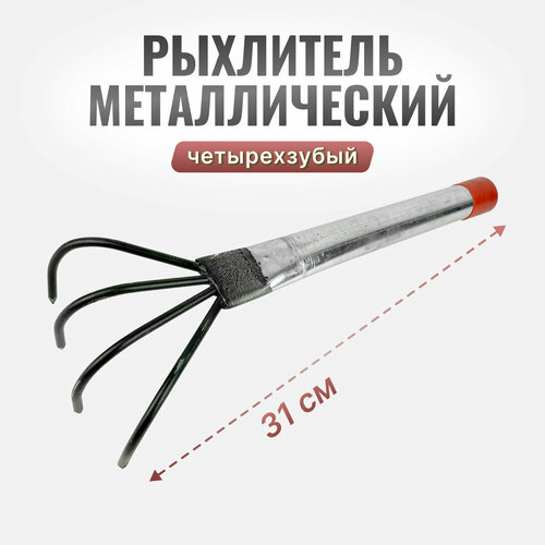 Рыхлитель металлический 4-х зубый, черный, с красной заглушкой