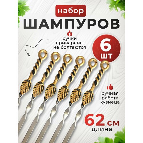 Шампура для мангала "Росток" (комплектация: 6 шт.) цвет: золотой, длина: 62 см.