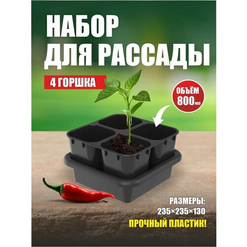 Набор для рассады 0,8л (1 кассета из 4-х стаканчиков с вкладышем + ящик) АП 118
