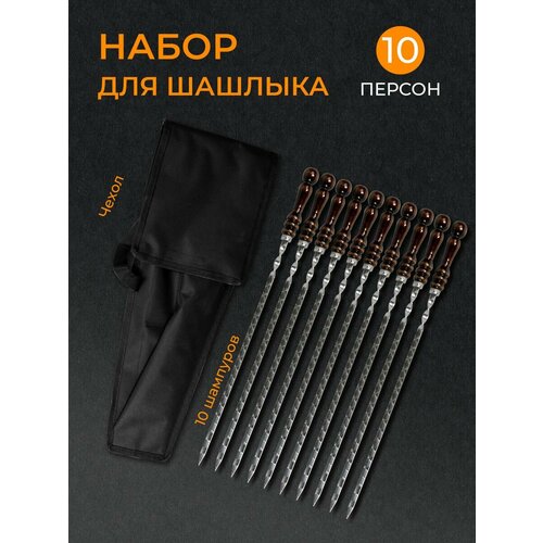 Шампура с деревянной ручкой / набор шампуров шашлычный 10 шт
