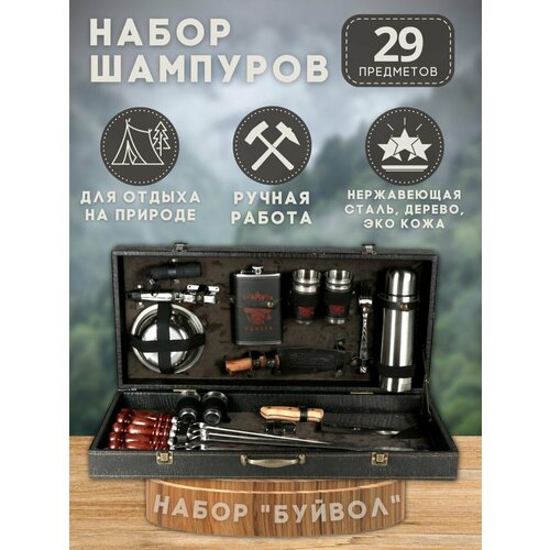 Внимание: У НАС большой выбор наборов. Подробную комплектацию смотрите на фото, внимательно делайте заказ. ТО ЧТО заказали , ТО И прийдет. ВСЕ КАК на фото. Наборы с шампурами - роскошный подарок даже для самых искушённых мужчин! Подарочный набор мужчине с шампурами идеально подойдёт в качестве подарка на любой повод: 23 февраля, Новый год, день рождение, юбилей , годовщина свадьбы, новоселье и без повода. В наборе для шашлыка собрано все самое необходимое для комфортного отдыха на природе , на даче или дома. В нашем ассортименте большой выбор наборов для пикника , посмотреть детально комплектацию каждого набора Вы можете на фото. В изготовлении наборов мы используем только качественные материалы: пищевая нержавеющая сталь AIS