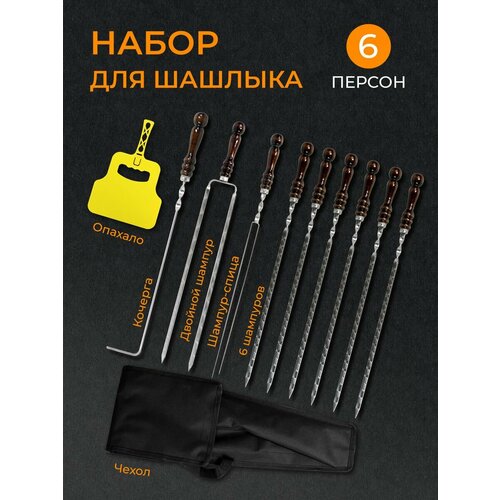 Набор шампуров подарочный, шампура с деревянной ручкой, в чехле