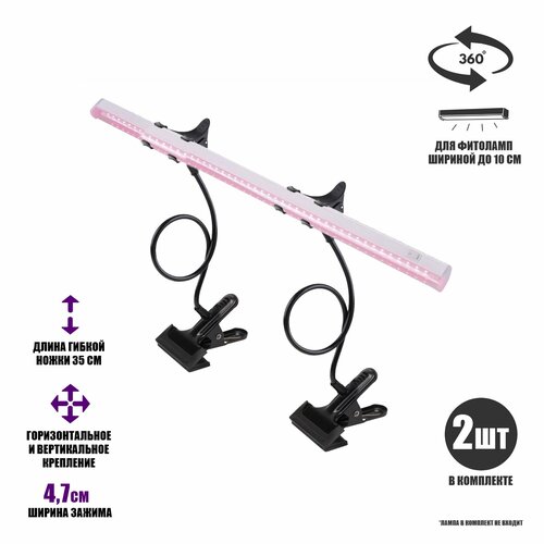 Комплект из 2 гибких держателей PH-2-P фитолампы для растений с пластиковым зажимом для поверхности до 8 см