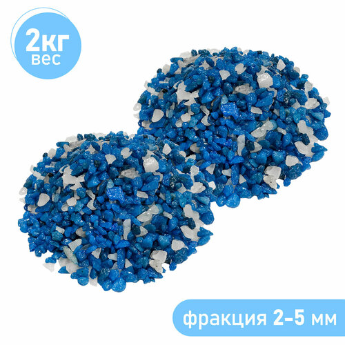 Натуральный грунт для кактусов, суккулентов и растений, Zoo One, природный материал, "Синий/Сапфир", (фракция 2-5 мм) набор 2 шт по 1 кг, GR15-1986-2