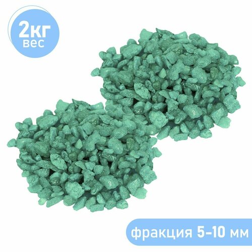 Натуральный грунт для кактусов, суккулентов и растений, Zoo One, природный материал, "Морская волна/Изумруд", (фракция 5-10 мм) набор 2 шт по 1 кг, GR15-0009-2