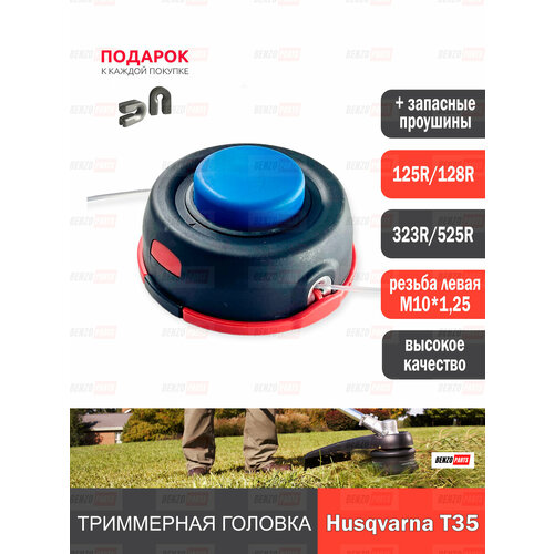 Триммерная головка T35 для мотокос Husqvarna 125R/ 128R/ 323/ 325 резьба М10х1,25 левая + проушины в подарок