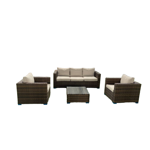 коричневый, бежевыйКомплект ALBERT, цвет натуральный, искусственный ротанг, каркас алюминий, столешница искусственное дерево, состоит из 3-х местного дивана, 2-х кресел, стола и 2-х пуфов