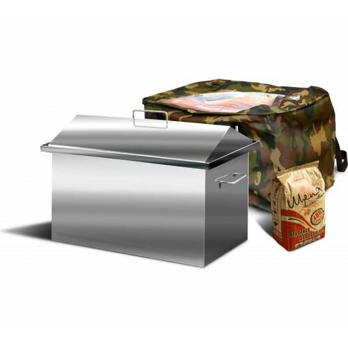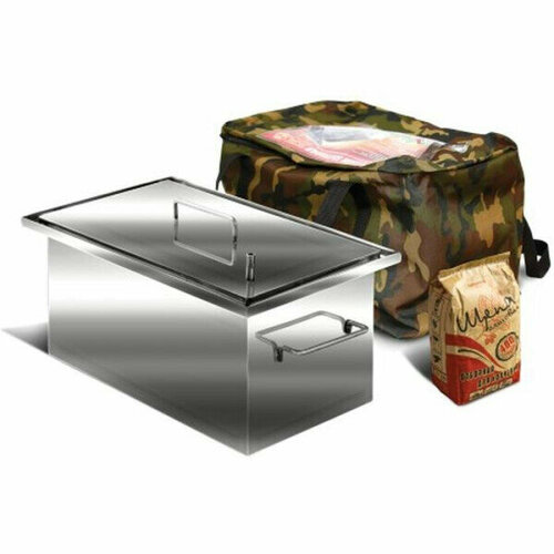 Коптильня Ольховый дым Универсал 400х200х200мм 2-хъярусная нержавеющая сталь 1.5мм, гидрозатвор, поддон для сбора жира, сумка, пакет щепы ольховой