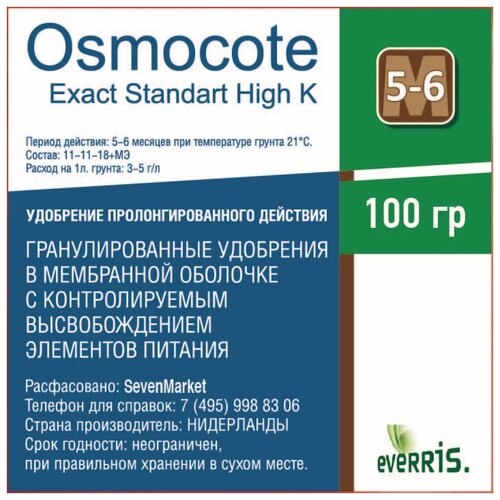Osmocote Удобрение Osmocote Exact Standard High K, 5-6 месяцев, 11-11-18 + 1,5 MgO+МЭ, гранулы, 50 мл