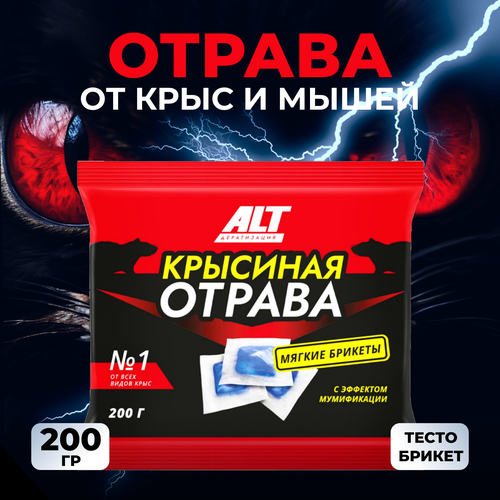 ALT Отрава для мышей и крыс, мумифицирующее средство от грызунов всех видов в тесто-брикетах, 200 г