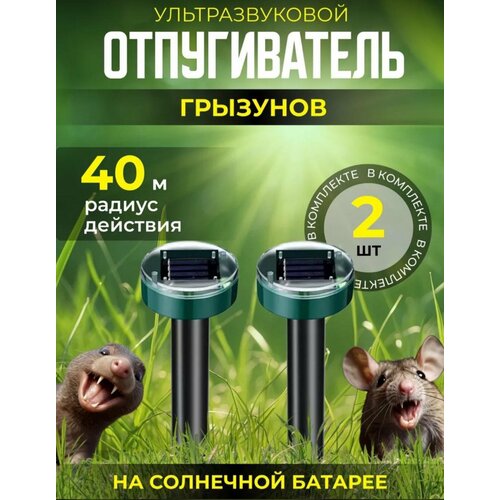 Ультразвуковой отпугиватель грызунов на солнечной батарее, 2 шт.