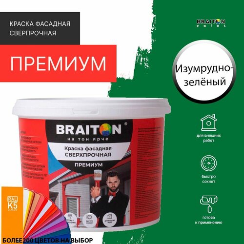 Краска ВД фасадная BRAITON Премиум Сверхпрочная 1 кг. Цвет Изумрудно-зелёный RAL 6001