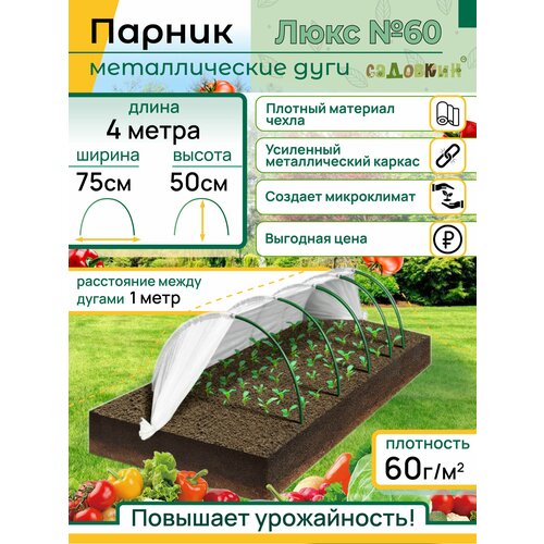 Парник для дачи "Люкс", с металлическими дугами, 1.5х4м, теплица дачная