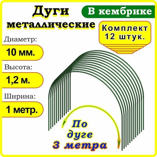 Дуги для парника металлические 3 метра в кембрике, комплект 12 шт. Зеленые