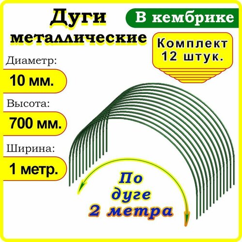 Дуги для парника металлические 2 метра в кембрике, комплект 12 шт. Зеленые