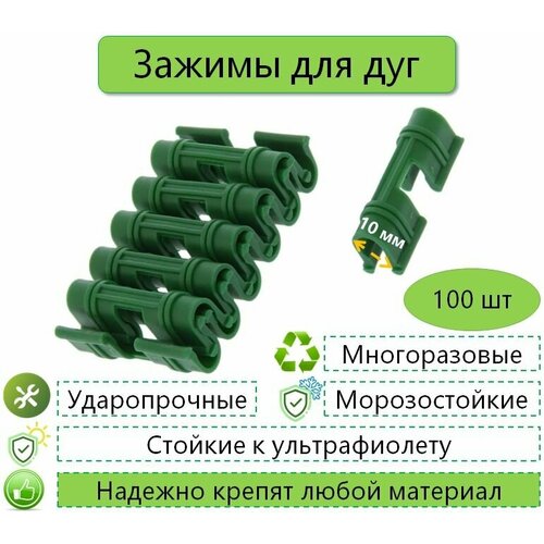 Зажимы / клипсы для дуг и парника, 10 мм, пластик, 100 шт