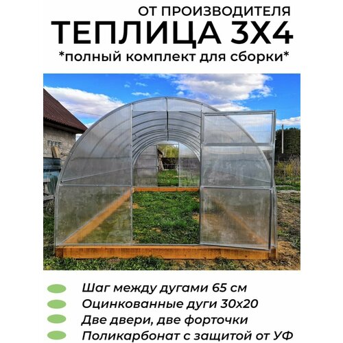 Теплица Арочная (Поликарбонат в комплекте), оцинкованный каркас дуги из профиля 30*20 мм, полный комплект для сборки. 3х4х2.02 м, шаг 65 см