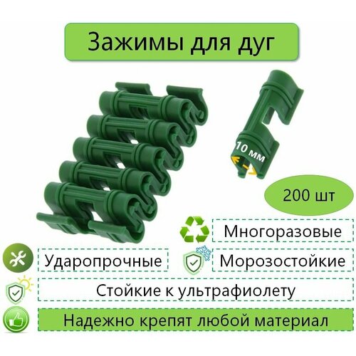 Зажимы / клипсы для дуг и парника, 10 мм, пластик, 200 шт