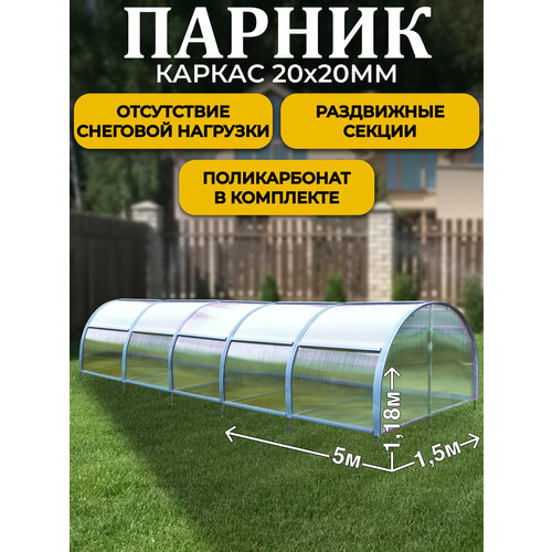 Парник ТМК Удача 1,5 х 5 х 1,18 м, поликарбонат 3,7 мм, без грядки