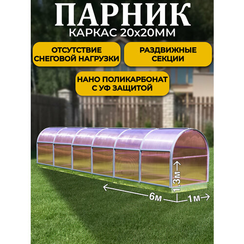 Парник ТМК Удача 1 х 6 х 1,3 м, поликарбонат Нано 4 мм, без грядки