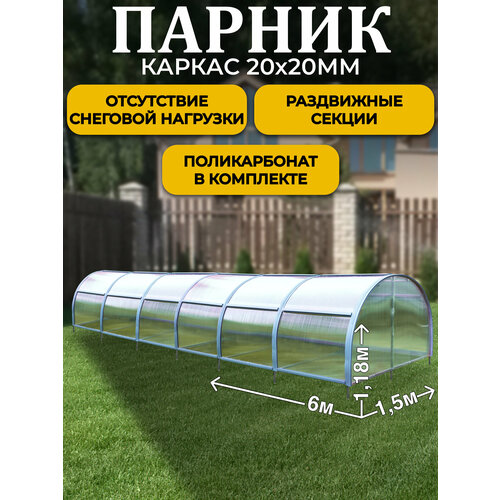 Парник ТМК Удача 1,5 х 6 х 1,18 м, поликарбонат 3,7 мм, без грядки