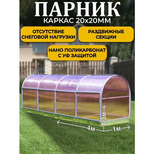 Парник ТМК Удача 1 х 4 х 1,3 м, поликарбонат Нано 4 мм, с оцинкованной грядкой