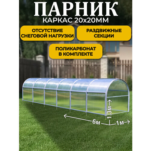 Парник ТМК Удача 1 х 6 х 1,3 м, поликарбонат 3,7 мм, без грядки