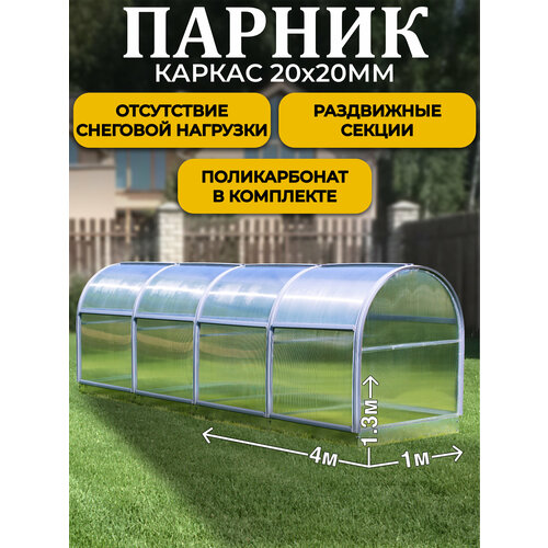 Парник ТМК Удача 1 х 4 х 1,3 м, поликарбонат 3,7 мм, без грядки