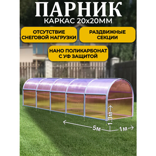 Парник ТМК Удача 1 х 5 х 1,3 м, поликарбонат Нано 4 мм, без грядки