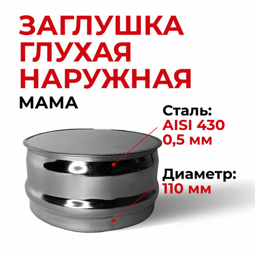 Заглушка для ревизии дымохода глухая наружная мама нержавейка D 110 мм "Прок"
