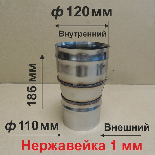 Переходник ф 110/120 мм П/М для дымохода нержавейка 1 мм