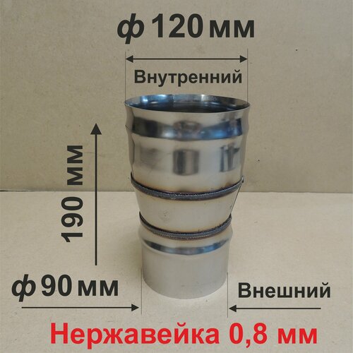 Переходник ф 90-120 мм П/М для дымохода нержавейка 0,8 мм
