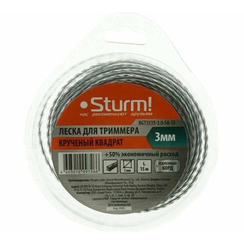 Леска 3.0мм 15м крученный квадрат армированная Sturm