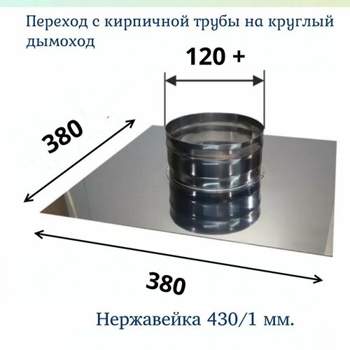 Переход с кирпичной трубы на круглый дымоход Сталь - Мастер Ф120 / нерж 1,0 AISI 430/ 380*380
