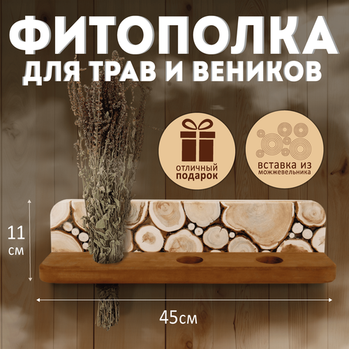 Фитополка из можжевельника и термолипы 45х11х10,5 см