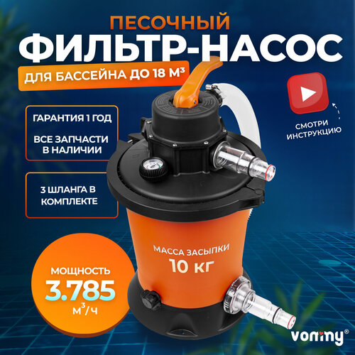 Песочный фильтр-насос (песчаный) Vommy с наполнителем силиконовыми шариками- 3,785 куб. м/час для бассейна объемом до 18 куб. м - каркасных, надувных, сборных бассейнов