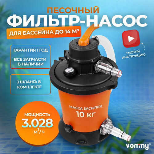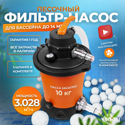 Песочный фильтр-насос (песчаный) Vommy с наполнителем силиконовыми шариками- 3,028 куб. м/час для бассейна объемом до 14 куб. м - каркасных, надувных, сборных бассейнов